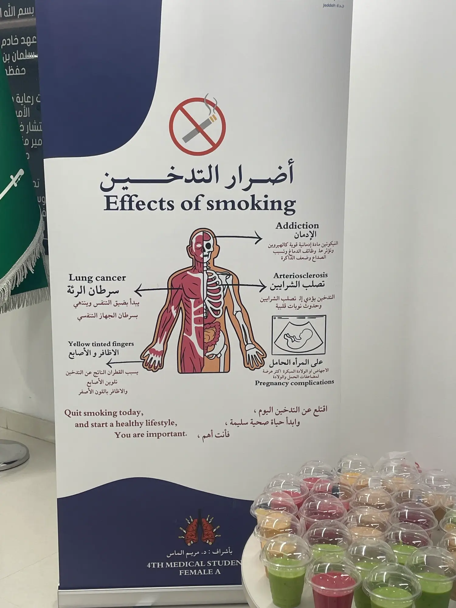 - تنظيم حملة توعية حول أضرار التدخين وطرق علاجه.