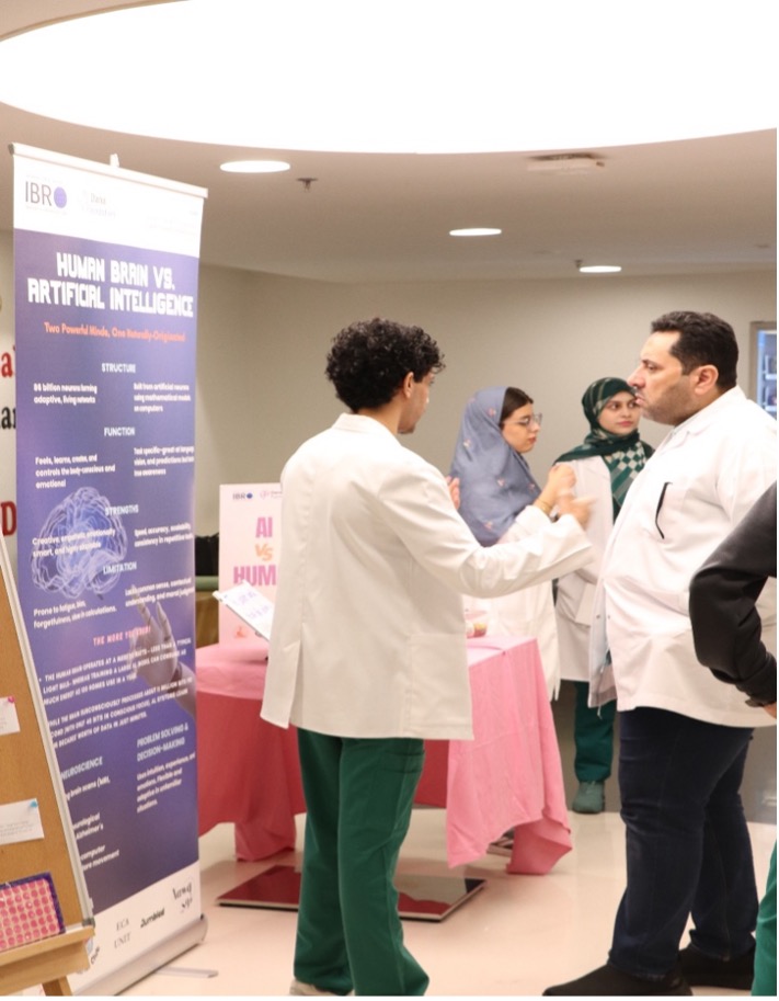 Fakeeh College for Medical Sciences proudly participated in Brain Awareness Week, a global initiative led by IBRO and the Dana Foundation. The event featured interactive stations that helped students and staff explore brain anatomy, function, and health in fun and educational ways. Highlights included microscopic brain models, a “Brain Myths and Facts” game, a nutrition corner with brain-friendly snacks, and a thought-provoking “Human Brain vs. AI” booth. With strong participation and positive feedback, the event sparked curiosity, corrected misconceptions, and promoted healthy brain habits, making neuroscience both accessible and exciting for the FCMS community.