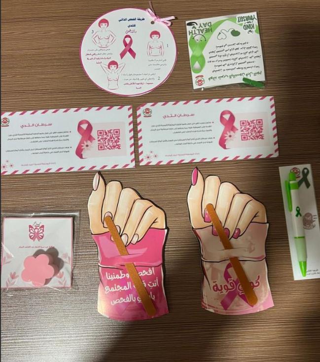 As part of the community service initiatives of Fakeeh College for Medical Sciences, FCMS staff conducted an interactive awareness session on breast cancer at Alqurayyat Women’s Association. The session included education about breast cancer risk factors, symptoms, and early detection methods. A live demonstration using a breast self-examination mannequin was performed to teach proper BSE techniques. Educational materials and giveaways were provided to encourage participation and promote awareness about the importance of early diagnosis.