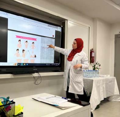 As part of the community service program at Fakeeh College for Medical Sciences, FCMS staff conducted interactive awareness sessions at different schools focusing on breast cancer education and early detection. The sessions included presentations on risk factors, symptoms, and myths about breast cancer, along with live demonstrations using breast self-examination mannequins. Participants learned proper BSE techniques and the importance of regular screening. Educational materials and giveaways were provided to encourage awareness and engagement.