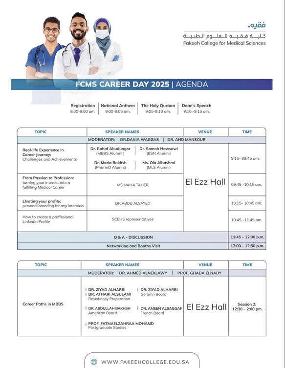 During Career Day, senior students and graduates can interact directly with different corporations, expanding their professional networks. The collaborative effort between FCMS and participating organizations will help equip students with the necessary support to transition into the labor market, aligning with the Kingdom’s Vision 2030.