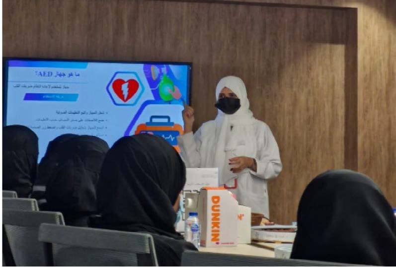 As part of the community service initiatives of Fakeeh College for Medical Sciences, FCMS staff and students conducted First Aid Awareness Activity at Alkhair Company in Jeddah. The session aimed to educate factory employees about first aid management for common workplace incidents such as burns, cuts, and heat exhaustion. Students demonstrated first aid techniques and guided participants on how to respond appropriately until professional medical help is available. The activity also included group discussions, Q&A sessions, and hands-on practice to ensure better understanding.