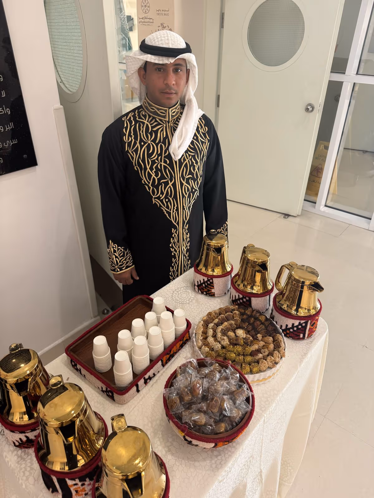 🔹 Traditional Saudi Hospitality: Guests and students were welcomed with authentic Arabic coffee and the finest dates stuffed with nuts, creating a warm atmosphere that reflected Saudi generosity and cultural authenticity.