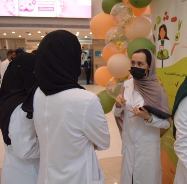 Students and staff gathered at Gate 5, Building 2 of DSFH at 12 PM. To avoid crowding, students worked in small groups, engaging attendees on the importance of a healthy diet, disease-specific dietary management, and practical tips for modifying eating habits to promote healthier food choices and overall well-being.