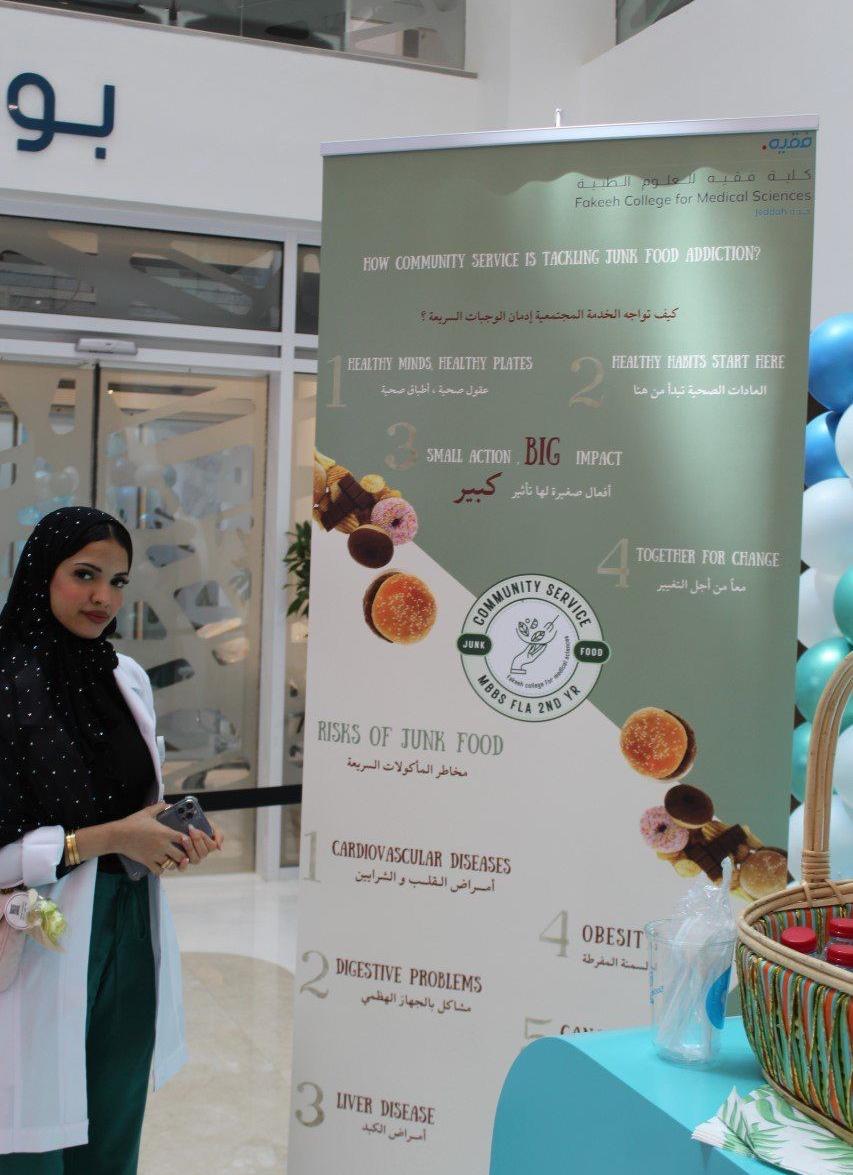 Students and staff gathered at Gate 5, Building 2 of DSFH at 12 PM. To avoid crowding, students worked in small groups, engaging attendees on the harmful effects of junk food, diseases linked to unhealthy eating, and practical tips for modifying food habits to promote healthier choices and overall well-being.