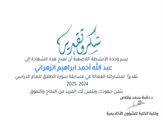 • The Surrah (Al-Talak) was chosen by the members responsible for follow up with students.