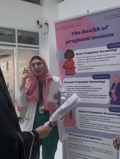 As part of the community service initiatives of Fakeeh College for Medical Sciences, FCMS staff and students conducted The Health of Pregnant Woman Awareness at DSFH to educate pregnant women, their families, and the public about maternal health, prenatal care, nutrition, and early recognition of pregnancy complications. The activity included informational booths, interactive discussions, and visual materials focusing on healthy pregnancy practices and the importance of early medical attention.