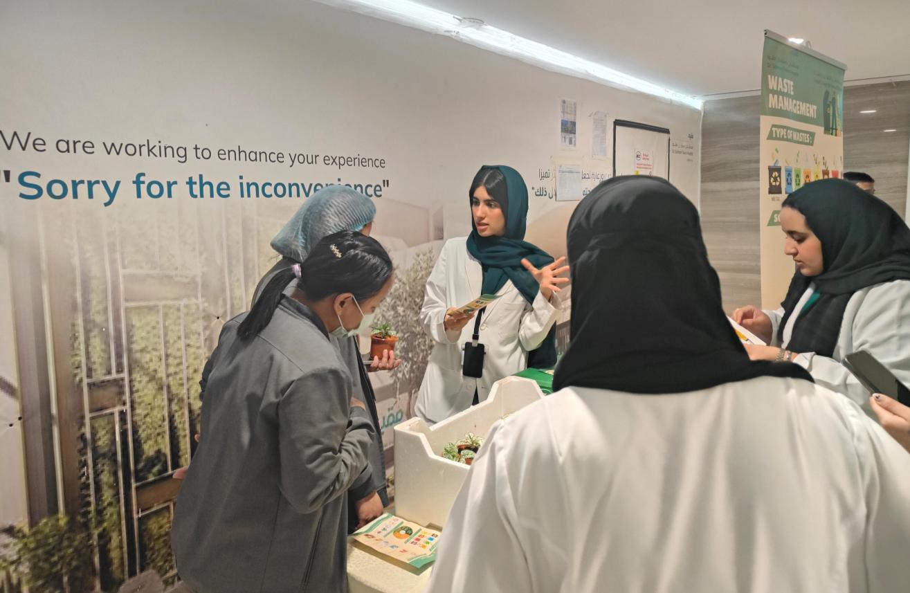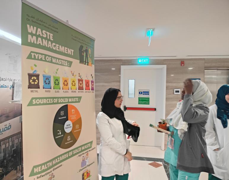 Under the supervision of the Community Medicine course (MED421), fourth-year MBBS female students organized a community service activity. They set objectives, prepared content, and designed flyers and roll-ups. After approval, giveaways such as plants, recycled bottles, glass straws, and cloth bags were arranged. During the event, students educated attendees on solid waste sources, effects, and prevention through reduce, reuse, recycle, and rot, while distributing flyers, giveaways, and surveys.